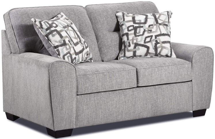 This modern loveseat features a tailored boxed seat and back cushions, and stylish track arms all with detailed welting. The sophisticated neutral chenille fabric in marble grey finish is polished by two geometric patterned toss pillows.Read More