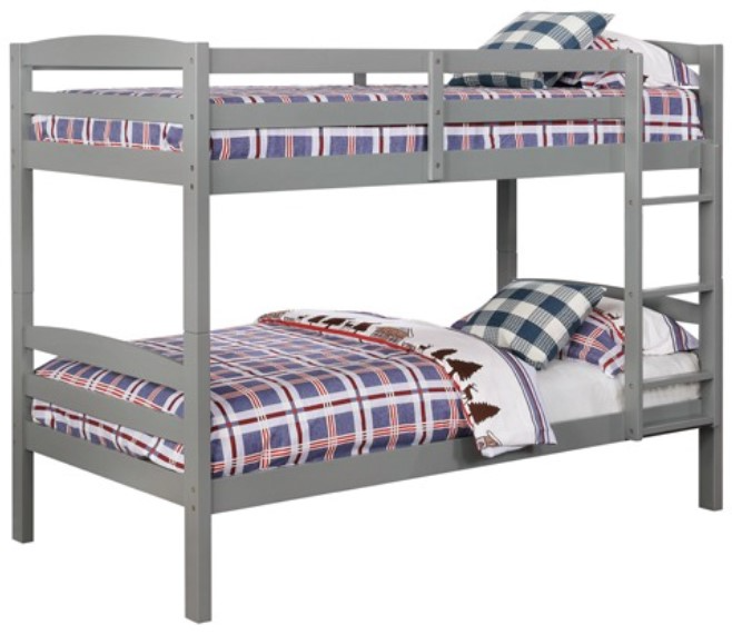Twin/Twin Gray Bunkbed is a space-saving and is perfect for smaller bedrooms. Sturdy construction and a durable multi-step finish will provide years safe, dependable use. The upper bed features side rails to prevent accidentally falling out of bed while sleeping, and is easily accessed by the built-in ladder.Read More