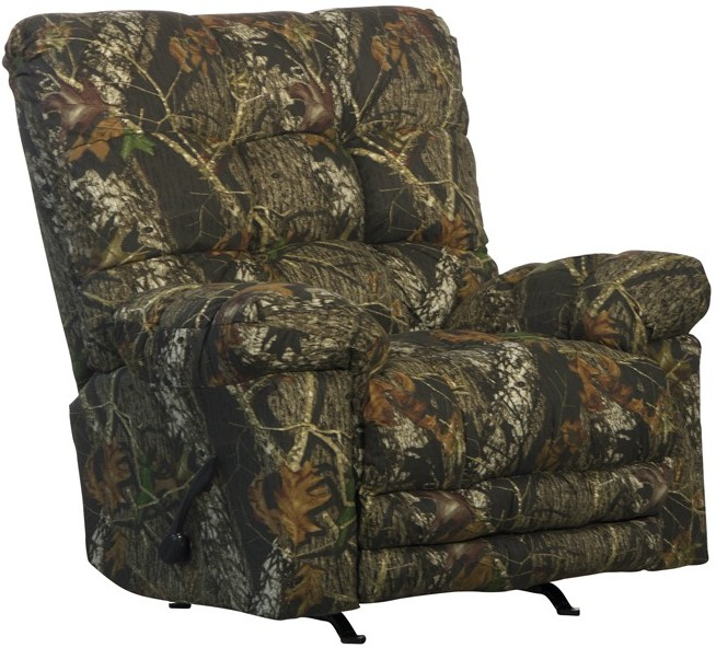 This manual recliner offers a comfortable rocking feature with an easy-to-use reclining function. Upholstered in a mossy oak pattern, it provides relaxation for everyday use. Its sturdy build and smooth motion make it a practical choice for unwinding in living rooms or entertainment areas.Read More