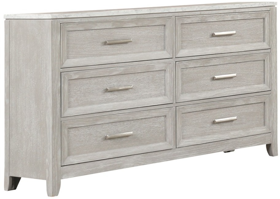 Elevate your space with the Fantasia dove bedroom collection. Features a beautiful gray wood finish, marble tops on the dresser and nightstand. Every piece is complete with elegant silver hardware.Read More