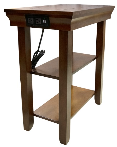 Elevate your living area with the Chairside Table from American Wholesale Furniture. Designed with convenience in mind, it features built-in USB ports for easy device charging. Its compact design and sleek finish make it a versatile addition to any space.Read More