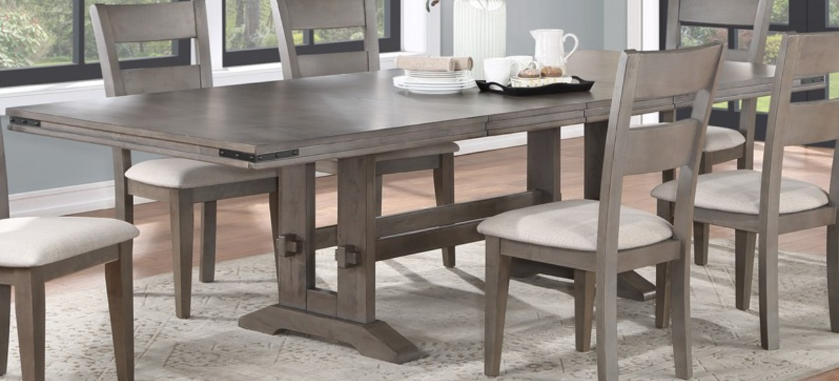 Lois gray dining is an efficient and streamlined design make this dining set an perfect addition to any dining space. Chairs features upholstered polyester fabric with padded foam for extra comfort.Read More