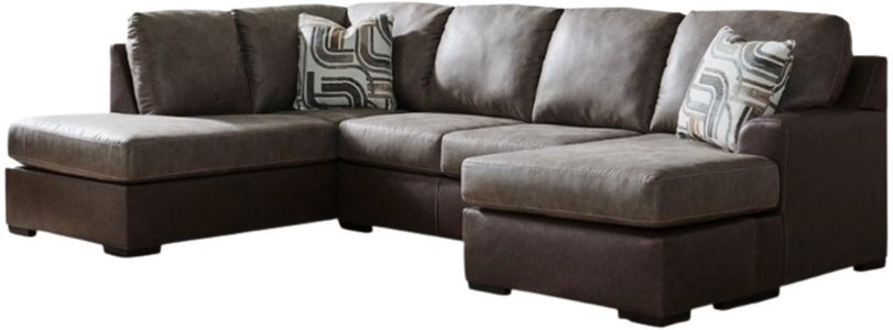 Living room lounging gets a dose of approachable luxury. This sleek sectional with chaise is defined by supple faux leather in contrasting rich brown hues, creating a stylish monochromatic look with dimension. From morning coffee to late-night movie marathons, it's sure to elevate the everyday.Read More